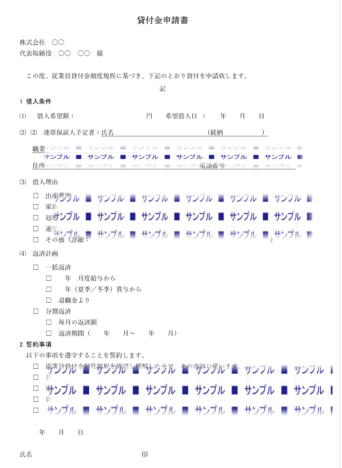 金銭消費貸借契約書(従業員貸付)及び従業員貸付金制度規程セット有料(税込1980円) Wordファイルを入手